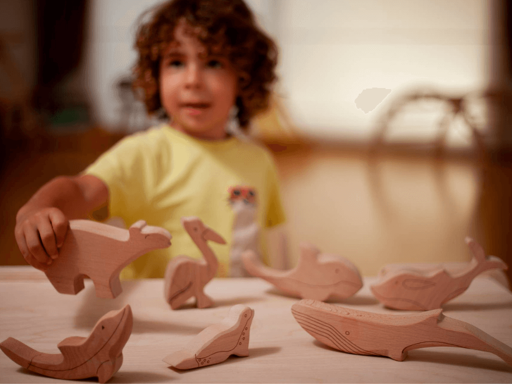 7-teiliges Holzspielzeug-Set, Meerestier-Figuren